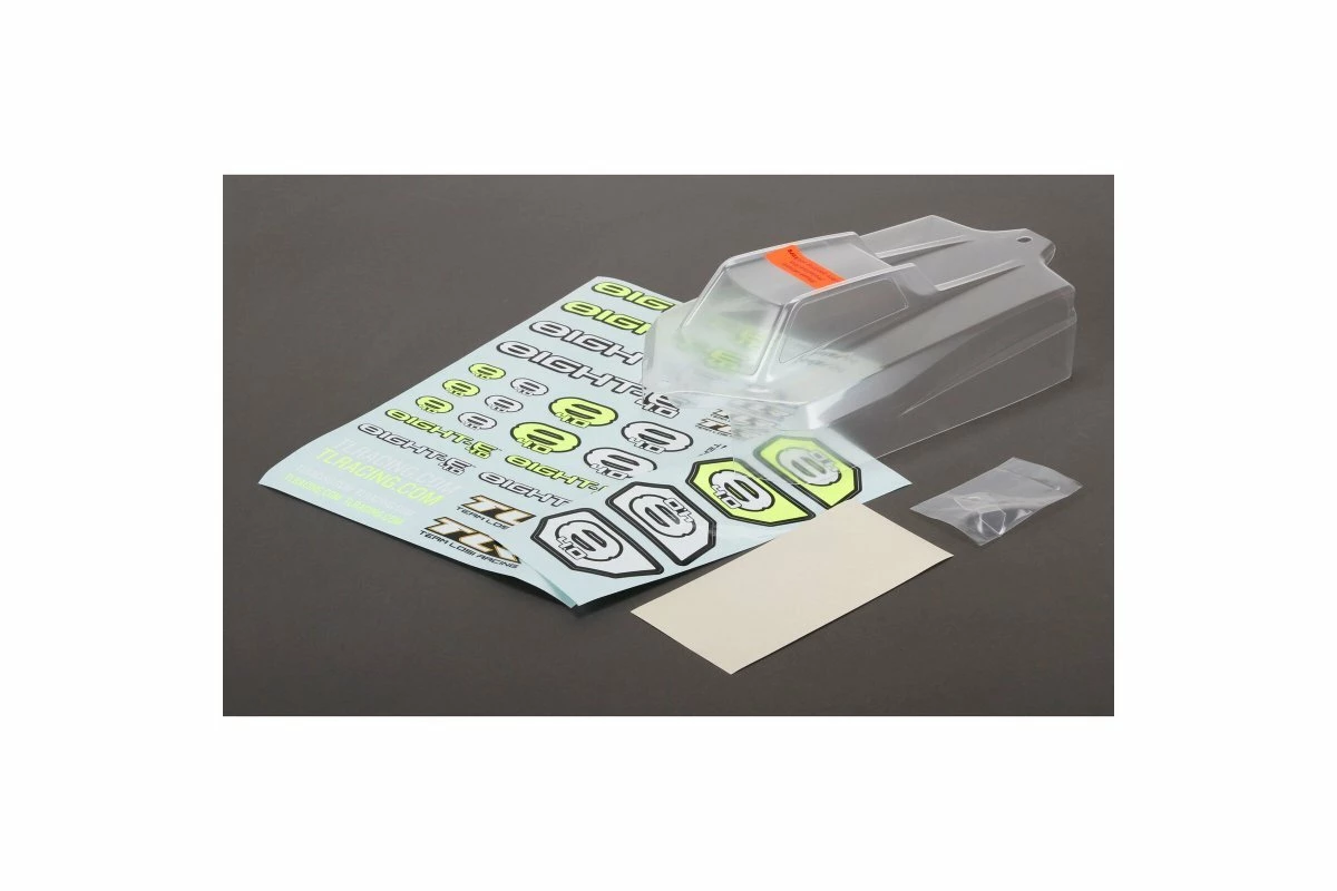 This clear body set is designed for the TLR 8IGHT-E 4.0 buggy.